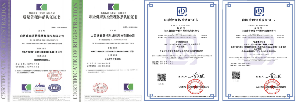 山西盛泰源特种材料科技有限公司 对标德、日质量,专注特种新材料 自主研发团队 匠心铸就精品 技术引领行业标杆 专注高品质特种金属材料 产品应用于:高铁、航空、航天、电力、通讯、汽车、家电、石化、冶金等领域。 国家级两化融合管理体系A级 山西省高新技术企业 山西省专精特新企业 山西省企业技术中心 资质及批复 当前主要合作伙伴 车间场地 盛泰源拥有5.15万平米生产车间,包括1.8万平米冶炼铸造车间、0.45万平米锻造车间、0.3万平米电渣重熔车间、2.6万平米热处理与机加工车间,能为客户提供从钢锭、锻造毛坯、粗加及精加工的多类产品。 拥有国内先进冶炼、锻造、热处理设备与机加工能力,主要设备有: 20吨电弧炉 20吨AOD氩氧炉 20吨LF精炼炉 20吨VD真空炉 20吨VOD真空炉 电渣重熔炉 X 8台 2500吨快锻机 8吨电液自由锻锤 抛丸机、扒皮机、热处理中心、机加工中心 配套检测检验设备等 自主研发、自有专利 特种材料研发中心 技术中心与国内科研院校密切合作并长期聘用国内从事金属材料方面的专家作为技术支撑。目前拥有专利33项,已完成了低膨胀合金、高品质热作模具钢与不锈钢等产品的前瞻性开发与规模化生产。 研发中心人员配备 冶金工程师 5人 材料工程师 10人 锻造工程师 5人 实验检测与管理 20人 检测设备 体系认证 ISO 9001:2015质量管理体系认证ISO 45001:2018职业健康安全管理体系认证GB/T 24001-2016/ISO14001:2015环境管理体系认证GB/T 23331-2020/ISO 50001 :2018能源管理体系认证 厂区一览